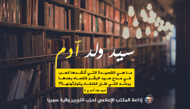 سيد ولد آدم ما هي القصيدة التي أنشدها كعب في مدح سيد البشر، فكساه بعدها بردته التي ظل الخلفاء يتوارثونها؟؟ سيد ولد آدم ح 4 بواسطة Radio Admin في 1444/03/20م شارك Your browser does not support the audio element. شارك FacebookTwitterGoogle+ReddItWhatsAppPinterestالبريد الإلكتروني