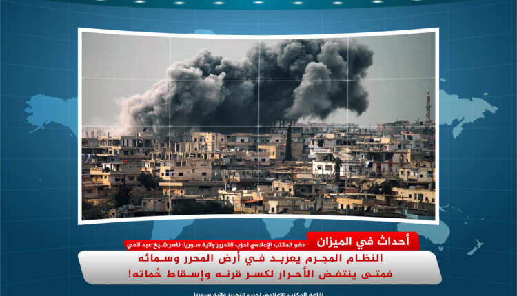 أحداث في الميزان: النظام المجرم يعربد في أرض المحرر وسمائه فمتى ينتفض الأحرار لكسر قرنه وإسقاط حُماته!. ناصر شيخ عبدالحي عضو المكتب الإعلامي لحزب التحرير في ولاية سوريا